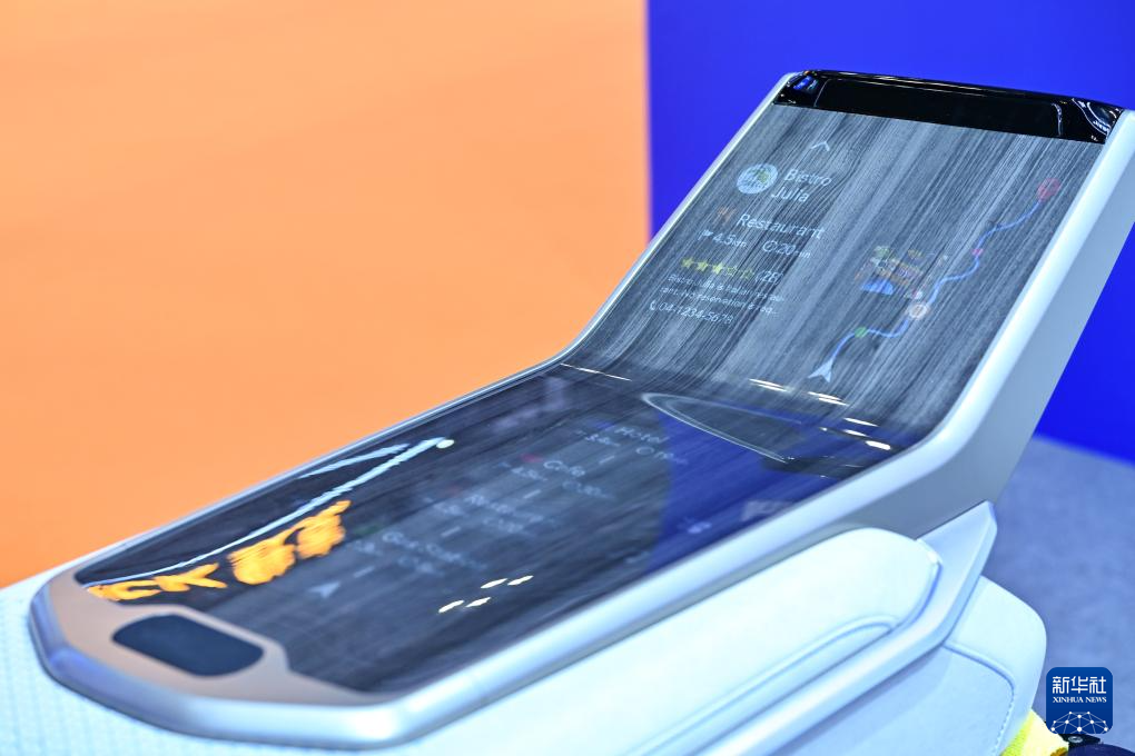 这是11月6日在进博会技术装备展区新材料专区东丽展台拍摄的一款使用多种新型材料制成的汽车智能中控台模型。新华社