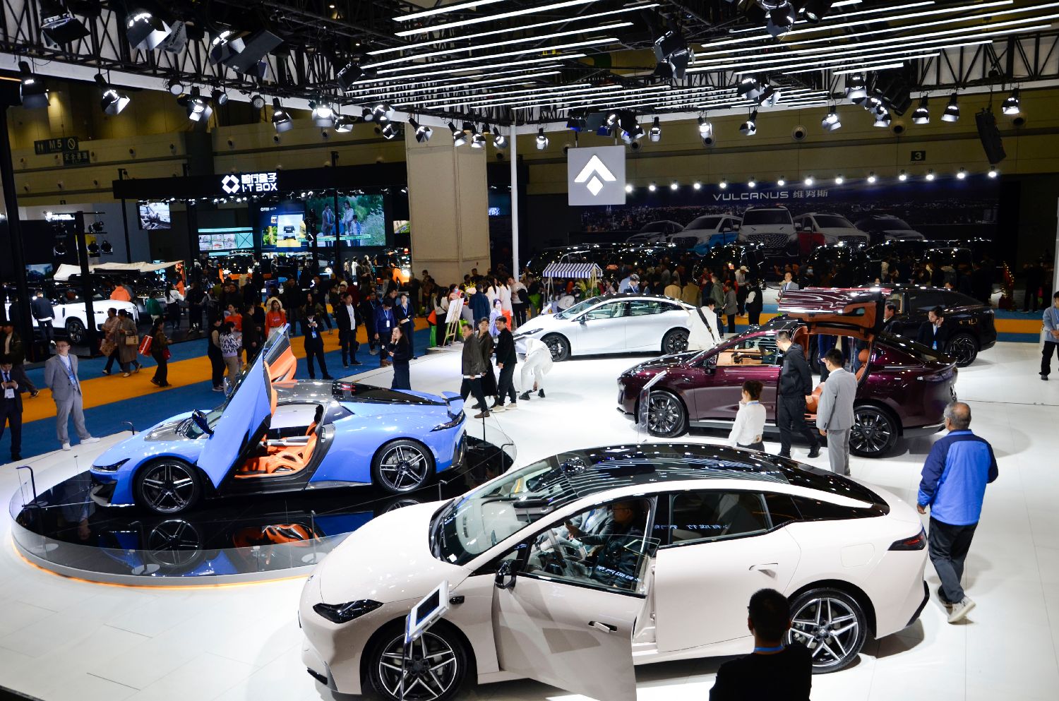 11月7日,2024第十六届郑州国际汽车展览会暨新能源·智能网联汽车展览会在河南郑州开幕,80余海内外知名汽车品牌携千余款热门车型参展。图为车展现场。中新社