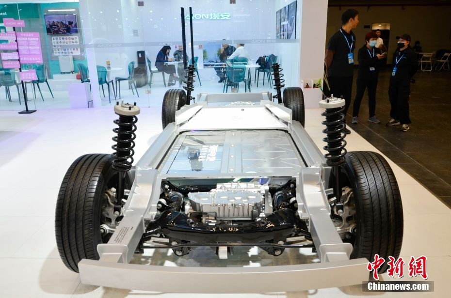 11月7日,车展现场展示的三合一高集成电驱动系统。中新网