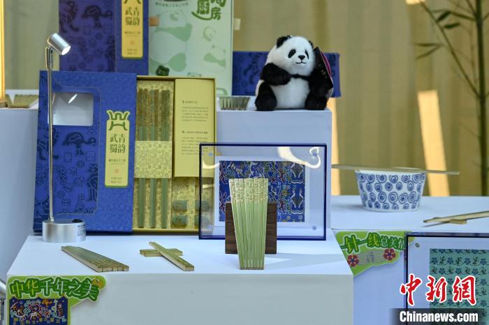 11月11日,竹子制作的手工筷等产品在展会中展示。中新网