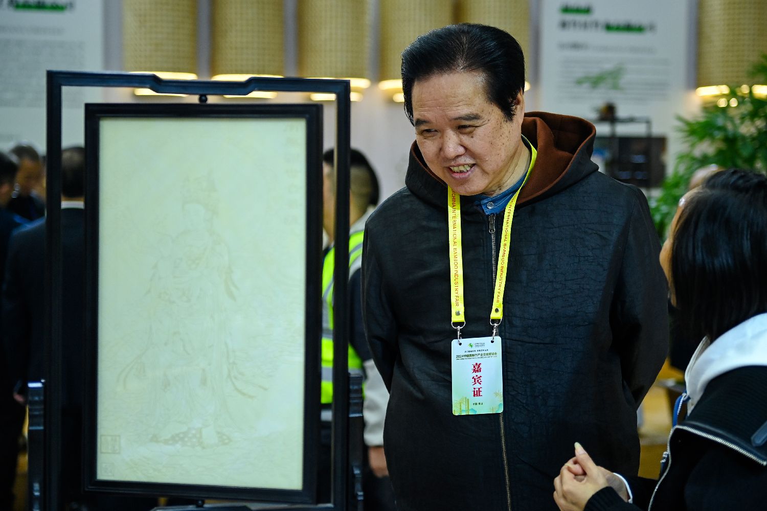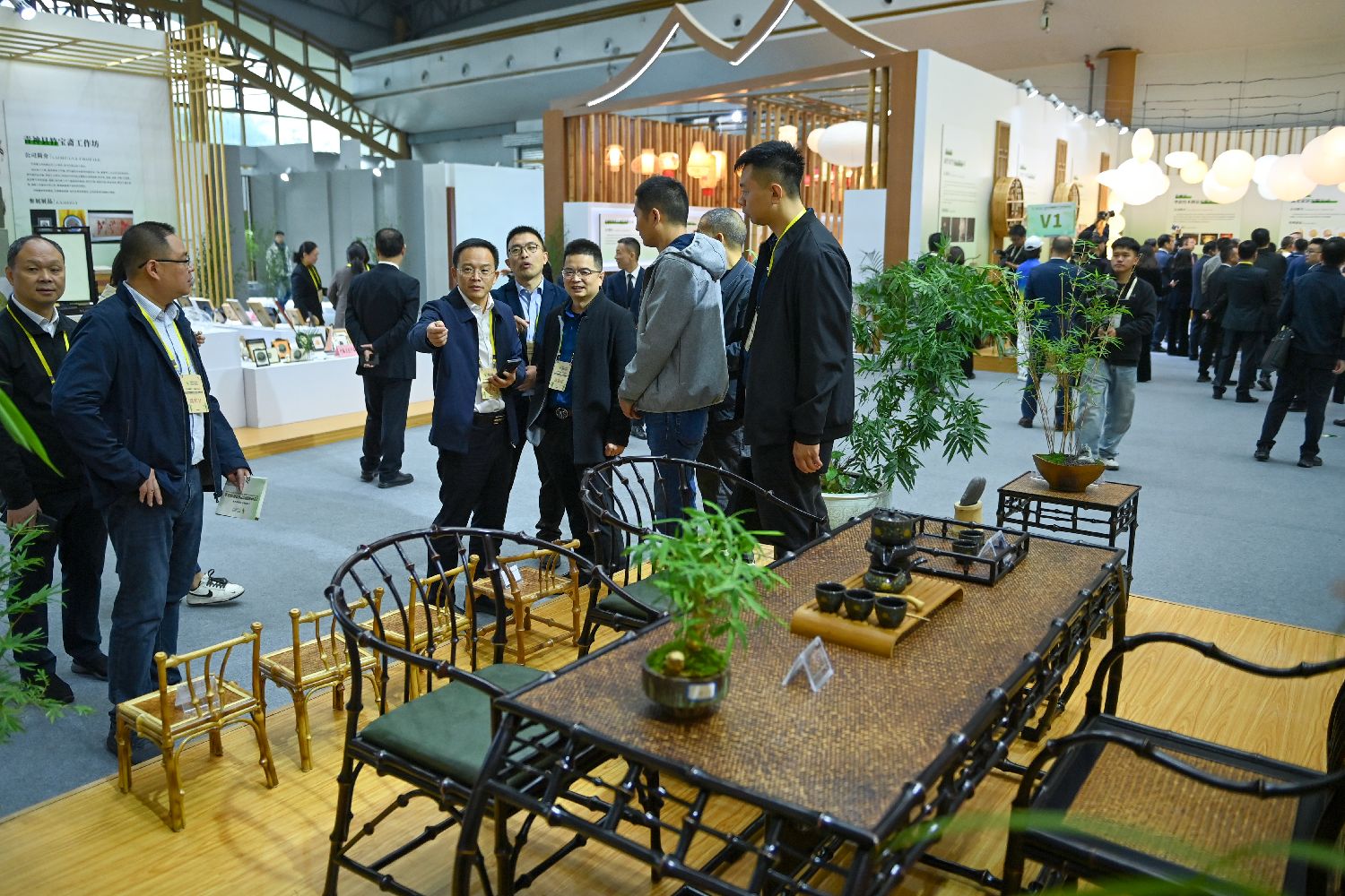 11月11日,竹子家居产品吸引参观者驻足。中新社