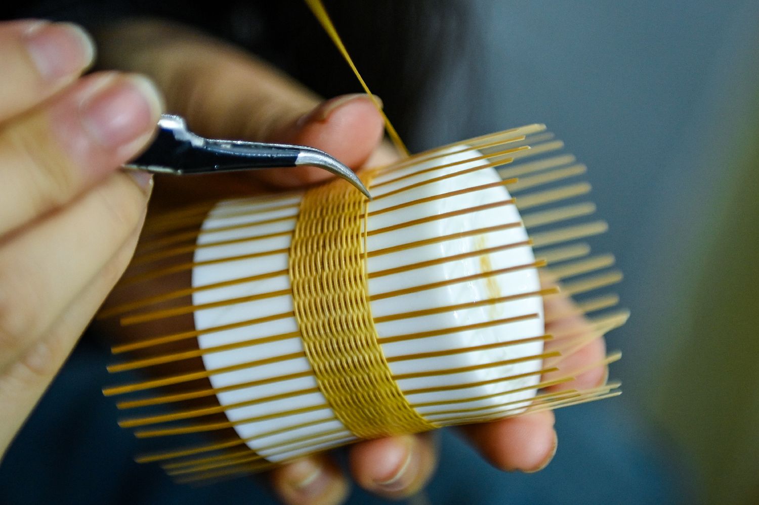 11月11日,博览会现场手艺人展示瓷胎竹编技艺。中新社