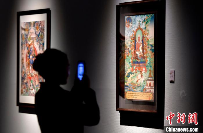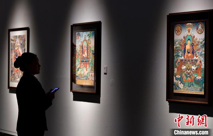 观众欣赏展览中的唐卡作品。中新网