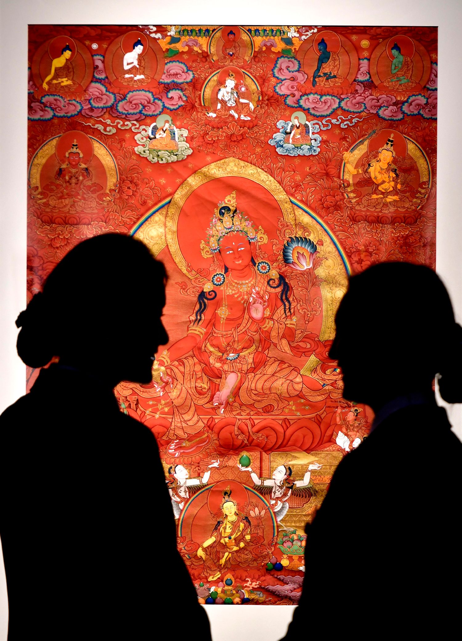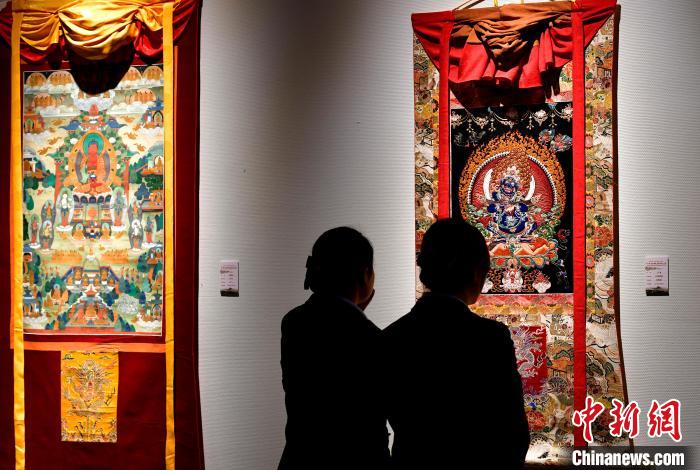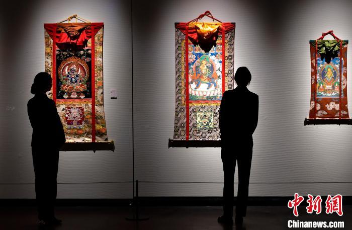 观众欣赏展览中的唐卡作品。中新社