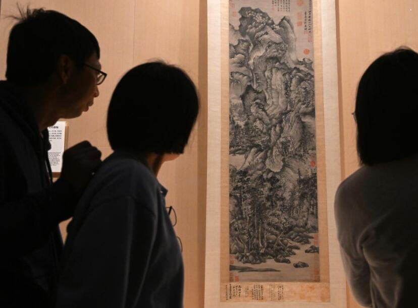11月14日,在上海博物馆东馆中国历代绘画馆,观众在明代文徵明的《真赏斋图》前驻足观看。