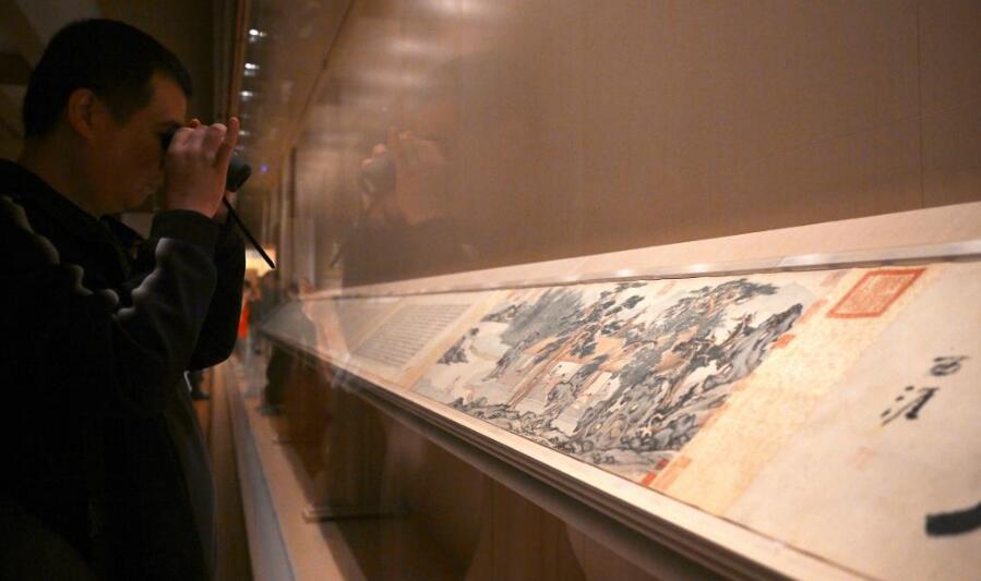 上海博物馆东馆的中国历代书法馆、中国历代绘画馆11月13日正式向公众开放,不少“国宝级”书画珍品和多年未公开展出的名家代表作在两馆亮相,吸引众多参观者。图为观众在元代王蒙的《青卞隐居图》前驻足观看。
