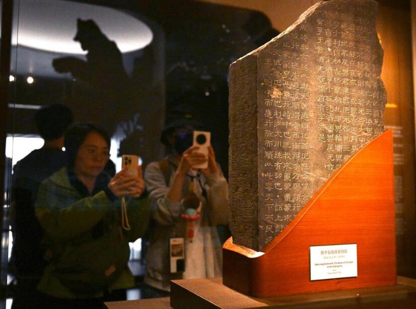 11月14日,观众在上海博物馆东馆中国历代书法馆拍摄东汉时期的《熹平石经周易残石》。