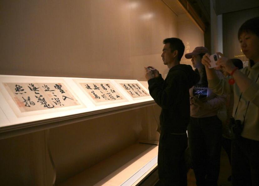 11月14日,观众在上海博物馆东馆中国历代书法馆拍摄北宋米芾的《行书多景楼诗册》。