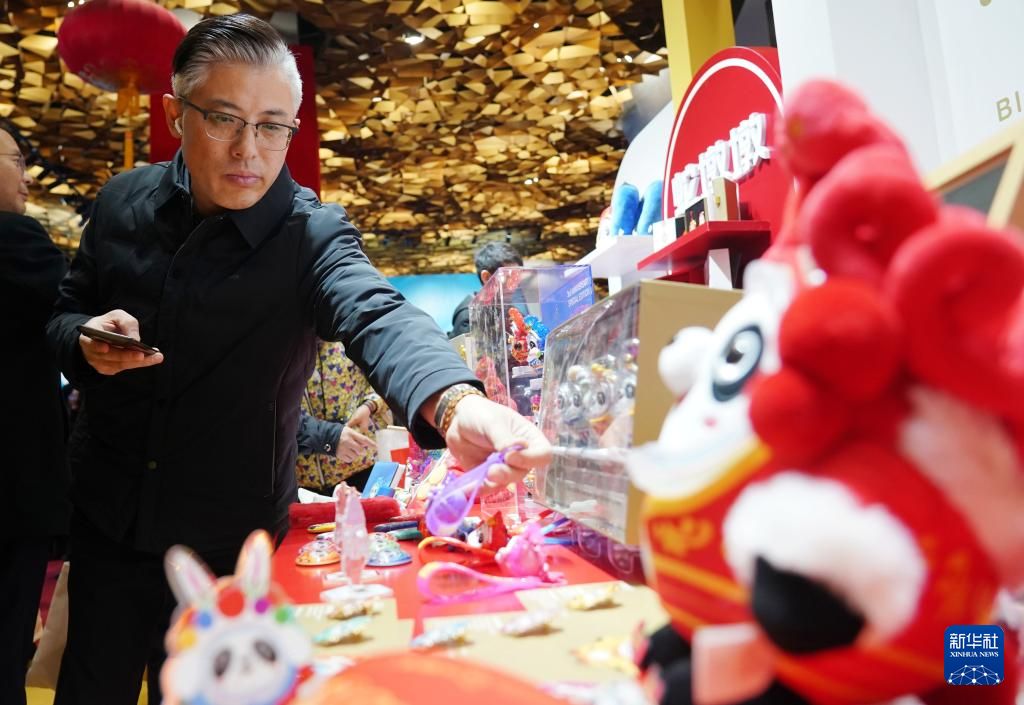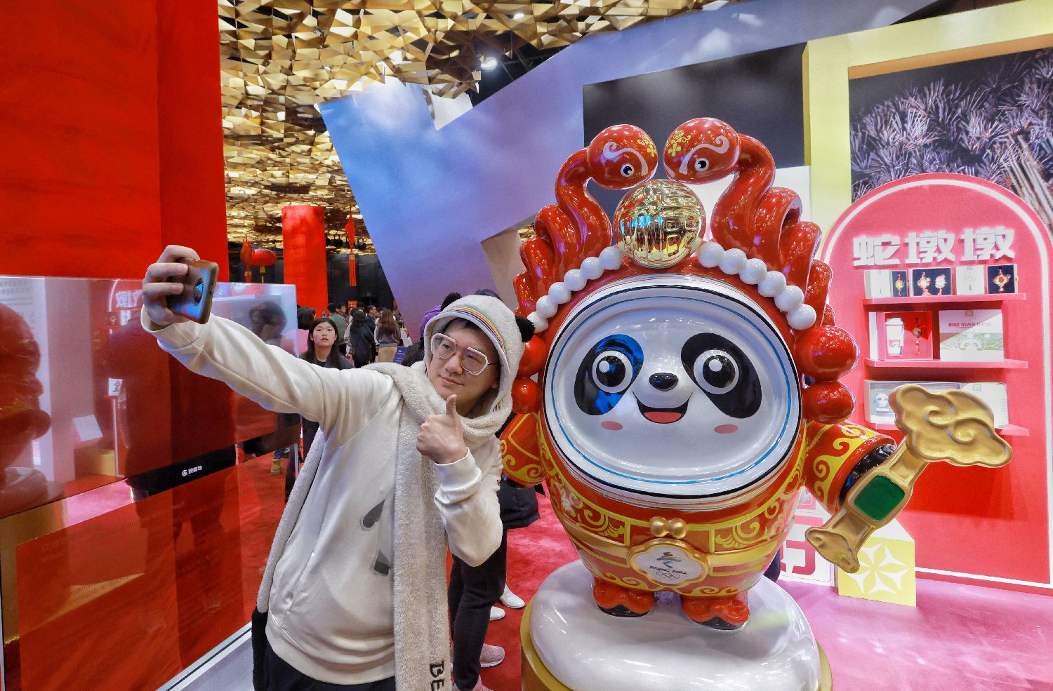 参观者在拍摄“蛇墩墩”系列新品。新华社
