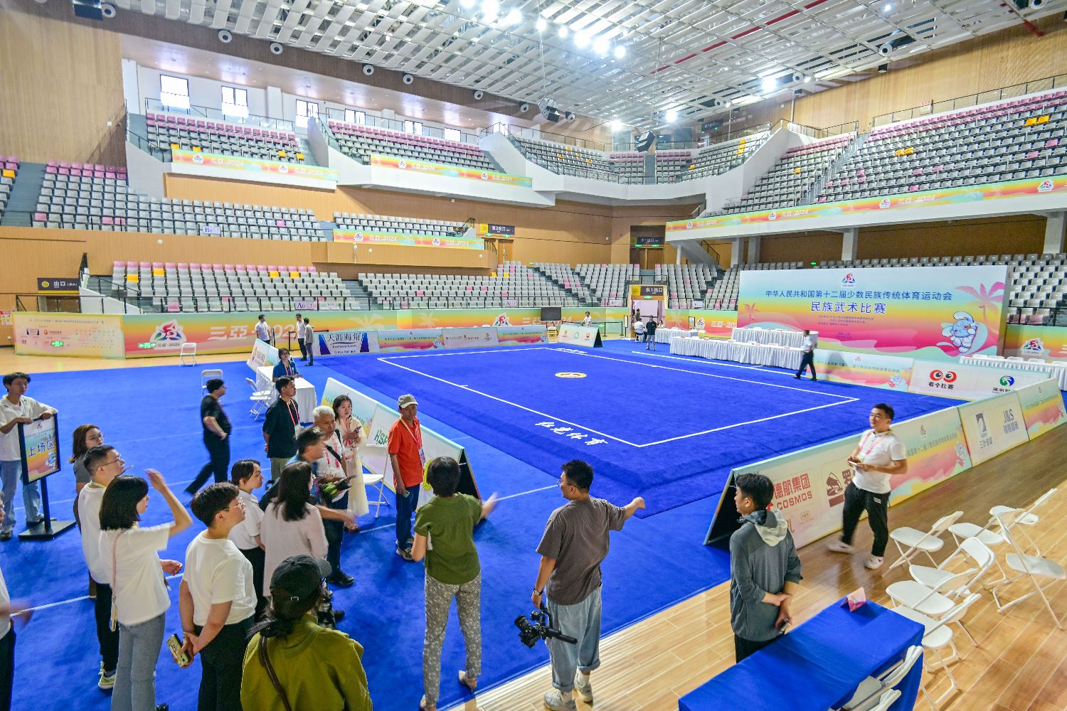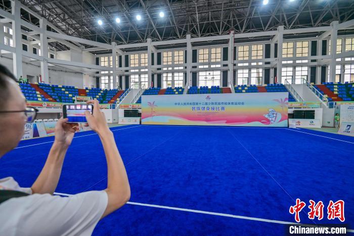 11月19日,媒体记者参观三亚学院体育馆,民族武术项目的比赛将在此进行。中新社