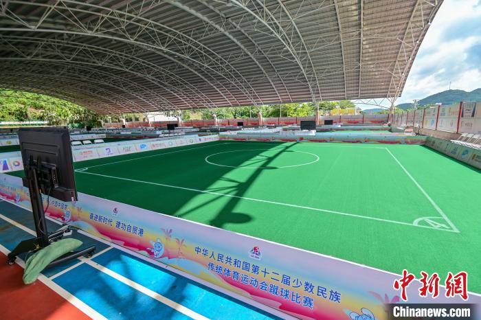 11月19日,三亚学院风雨球场,蹴球项目的比赛场地已准备就绪。中新网