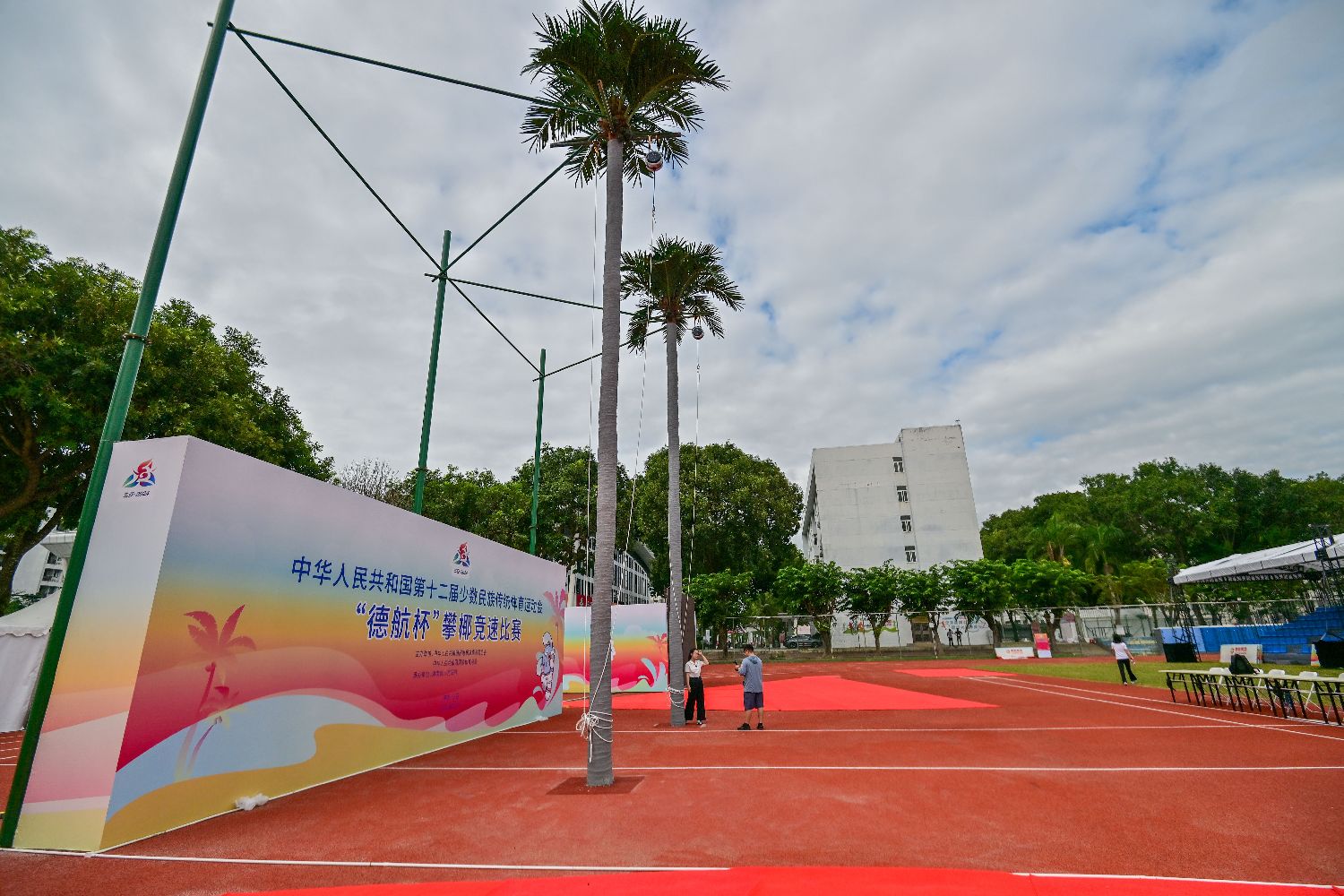 11月19日的西南大学三亚中学体育场,攀椰竞速项目的比赛将在此进行。中新社