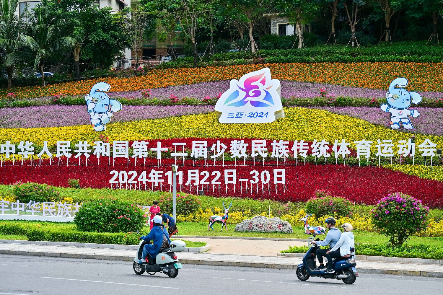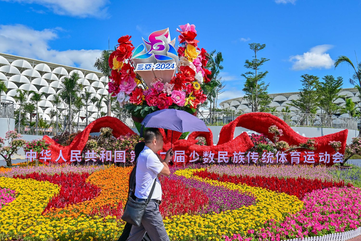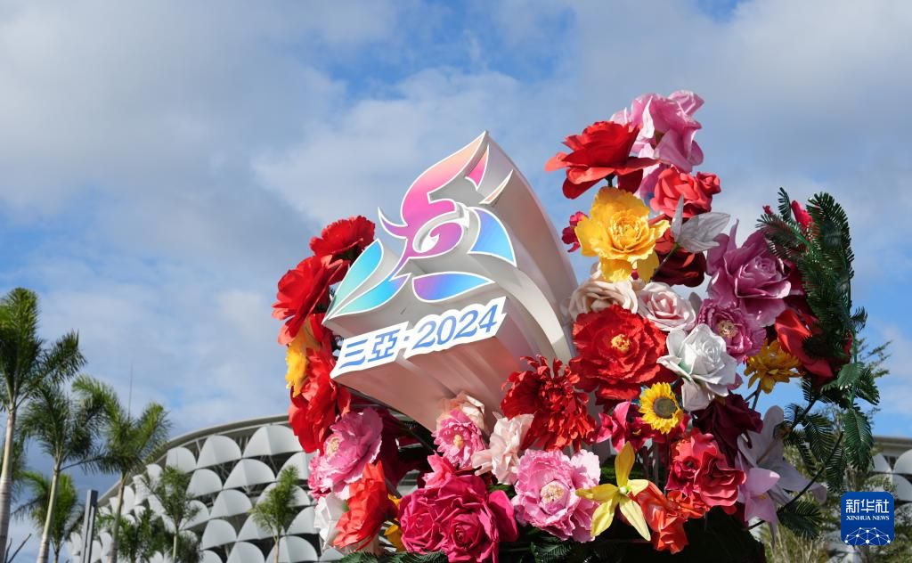 11月20日,三亚市体育中心外的运动会主题花坛格外醒目。中新社