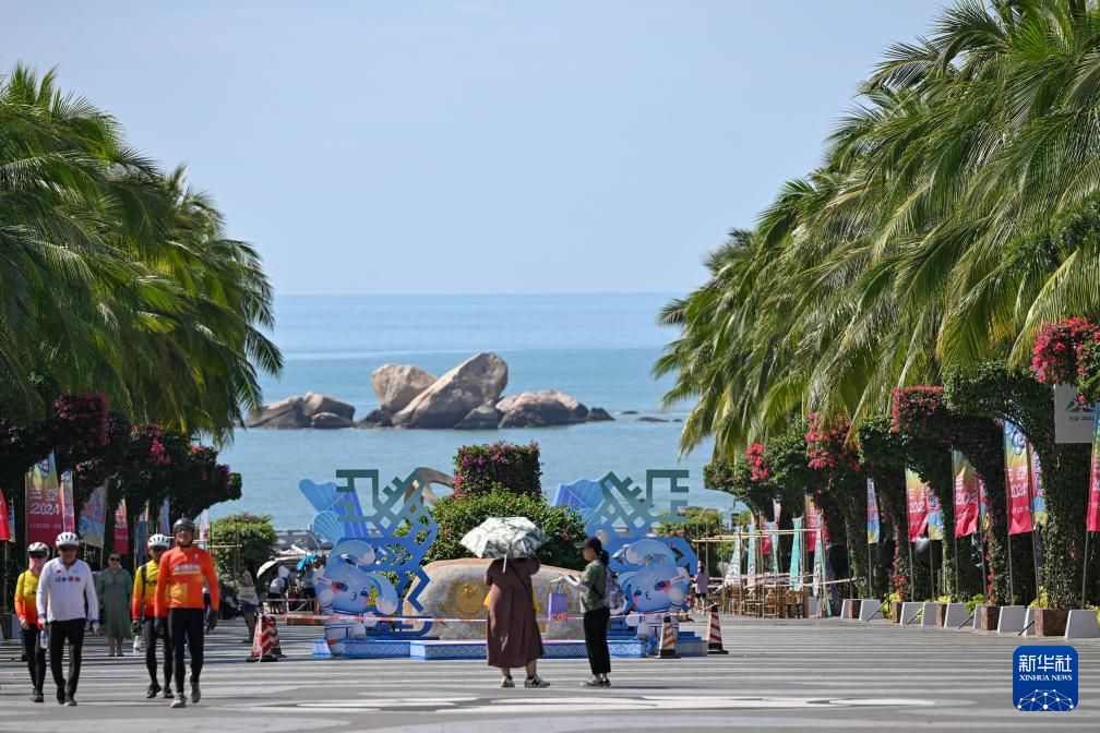 11月19日,游客从三亚天涯海角游览区运动会吉祥物前经过。新华社