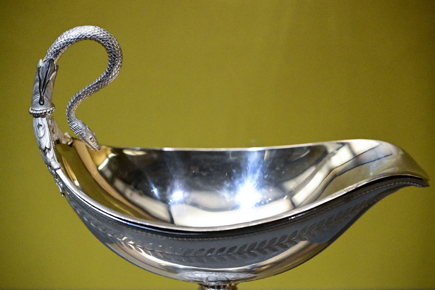 11月20日,“俄宴风华——克里姆林宫博物馆藏饮食文物精品展”在北京中国国家博物馆(下称国博)开展。该展展出138件(套)珍品,华丽的金银器、精美的瓷器和玻璃器,制作精巧的呈菜用具,赏心悦目的餐桌装饰、宴会服饰,加上以食用动植物为主题创作的装饰艺术品或实用性艺术品,让观众们领略到欧洲工匠的高超技艺,认识俄罗斯数百年的审美观念和艺术风格的演变。图为在国博展出的碗。中新社