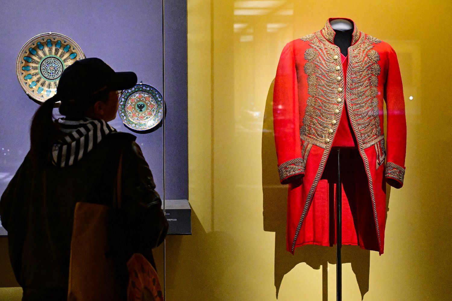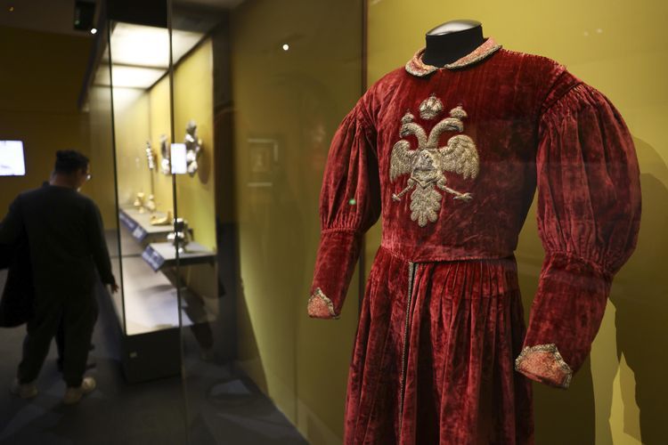 参观者在国博观看展出的宫廷总管礼服外套。中新社