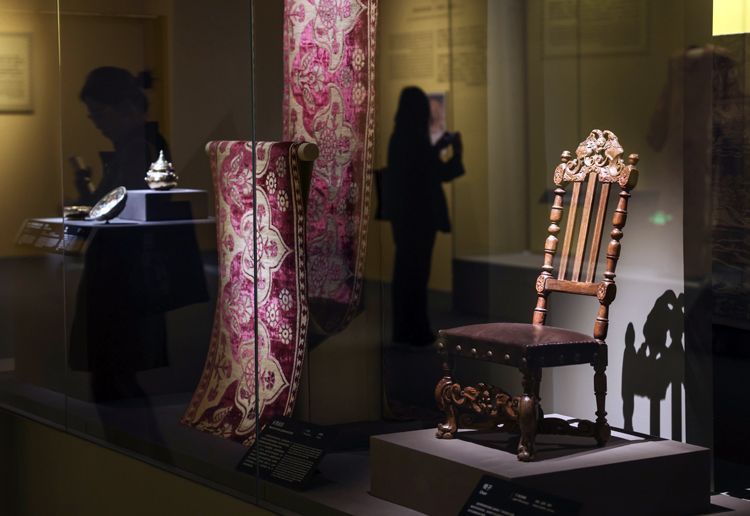 在国博展出的17世纪晚期的椅子和长凳盖毯。新京报客户端