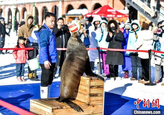 首滑仪式上的海狮表演吸引市民观看。