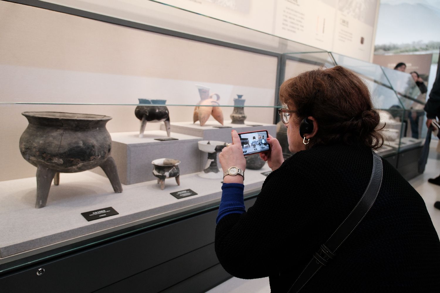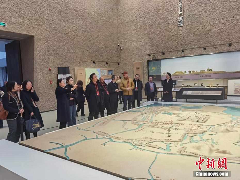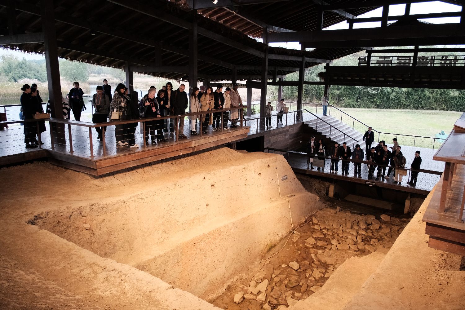 11月25日,考古学家在浙江杭州良渚博物院内拍照留念。中新社