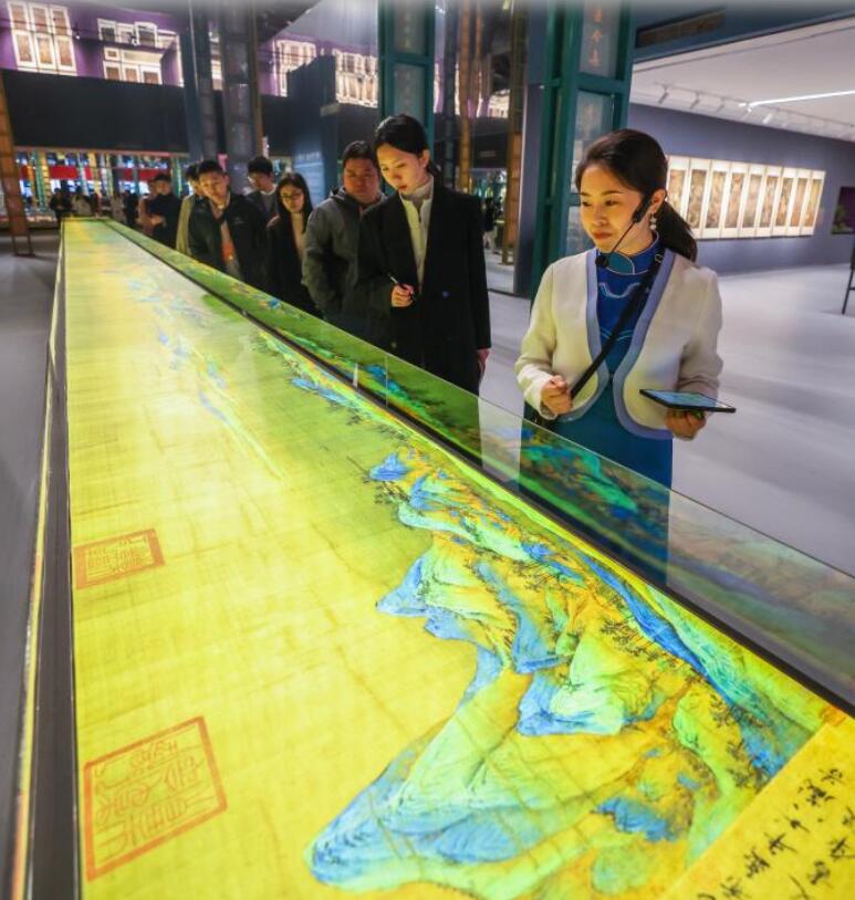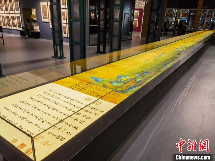 11月25日,“中国历代绘画大系”典藏馆内展出的放大版《千里江山图》。中新网
