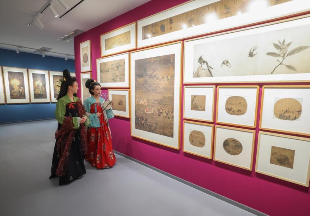 11月25日,身着传统服饰的观众在“中国历代绘画大系”典藏馆内参观。新华社