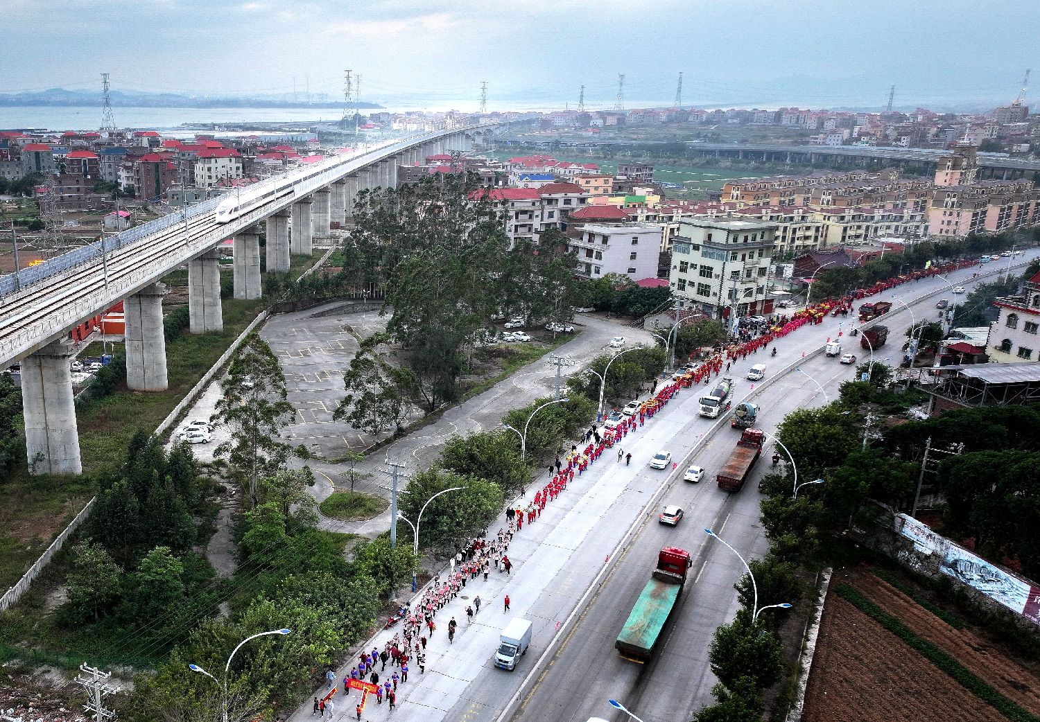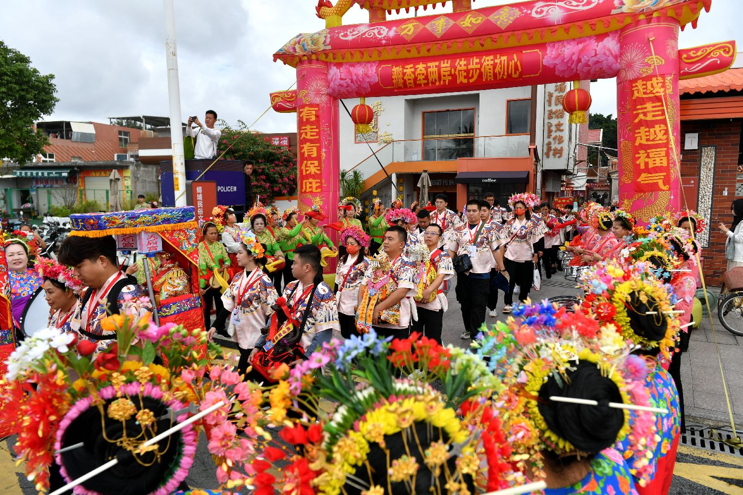 11月21日,泉州蟳埔村民众欢送两岸青年。中新社
