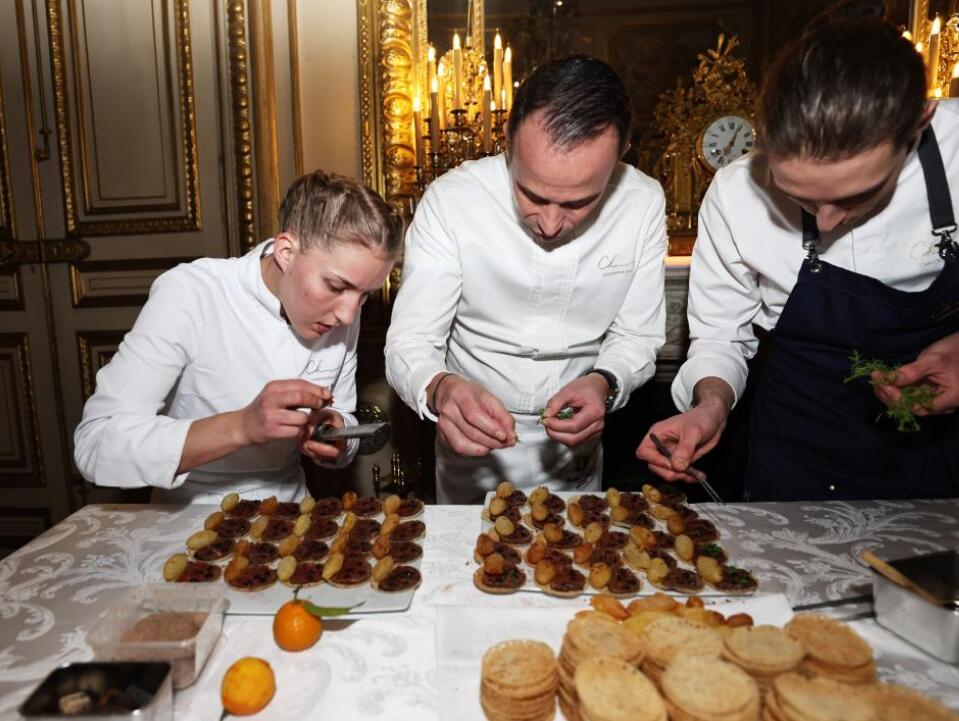 11月25日,在法国外交部举行的LA LISTE国际美食榜单揭晓活动现场,来自法国的主厨准备美食。