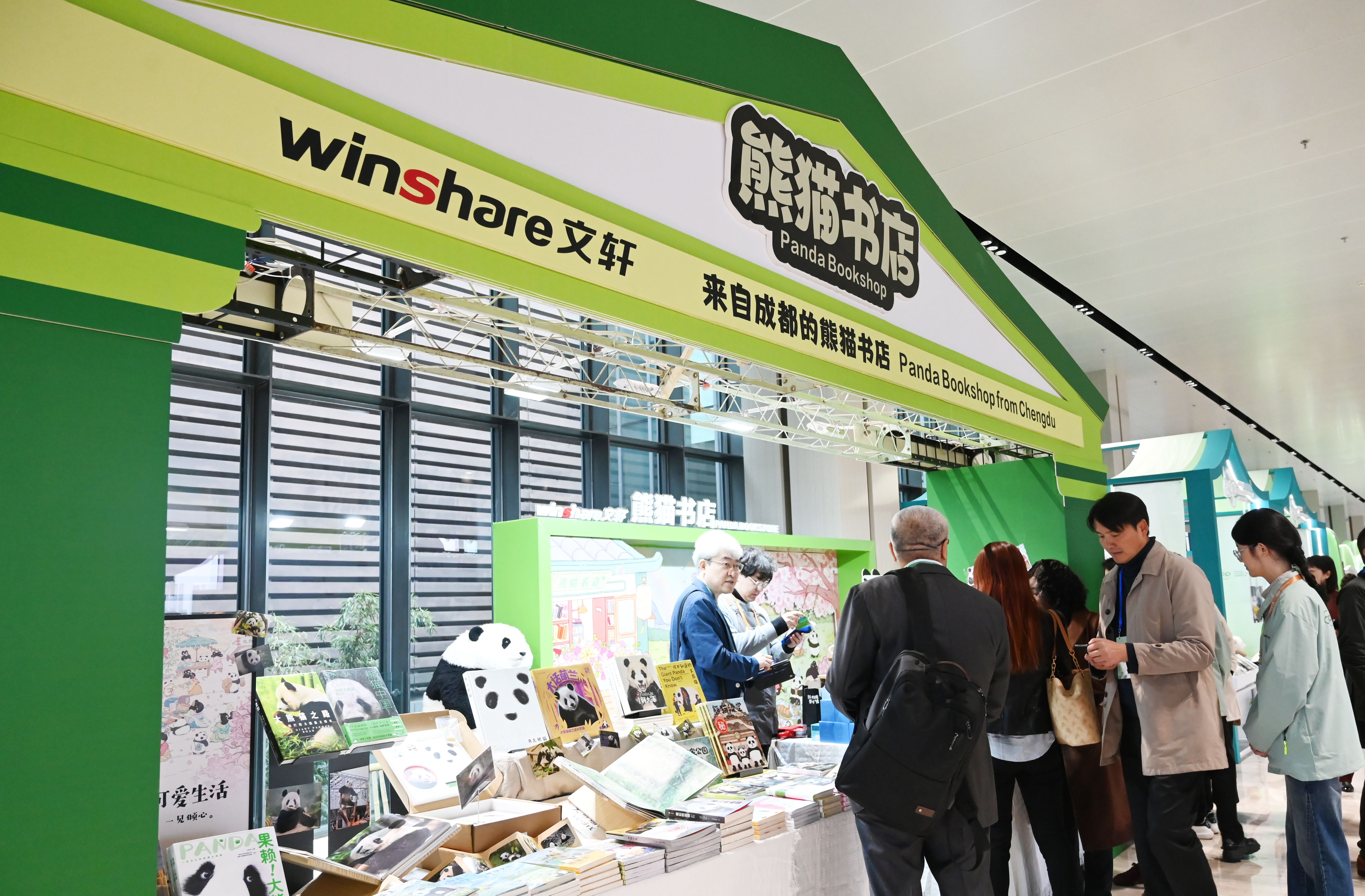 11月26日,与会嘉宾参观熊猫文创走廊展。中新社