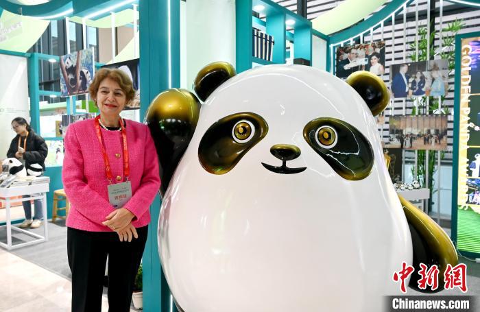 11月26日,联合国教科文组织前总干事、欧盟亚洲中心董事会高级顾问伊琳娜·博科娃与大熊猫玩偶合影留念。中新网