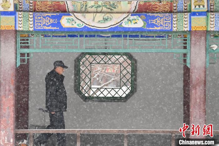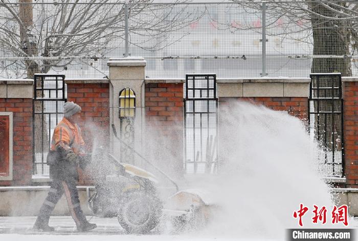11月26日,环卫工人在长春街道清扫路上的积雪。中新网
