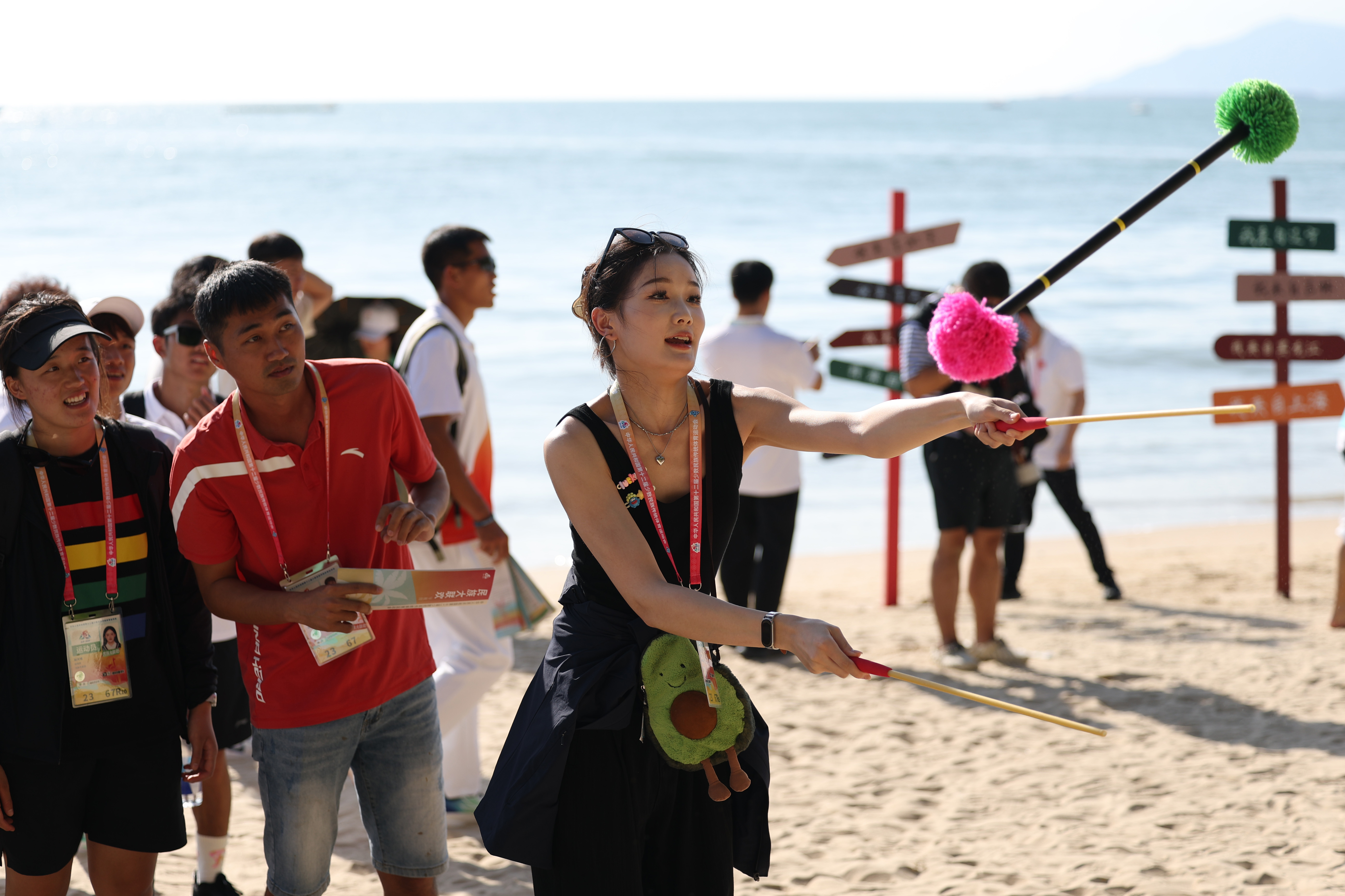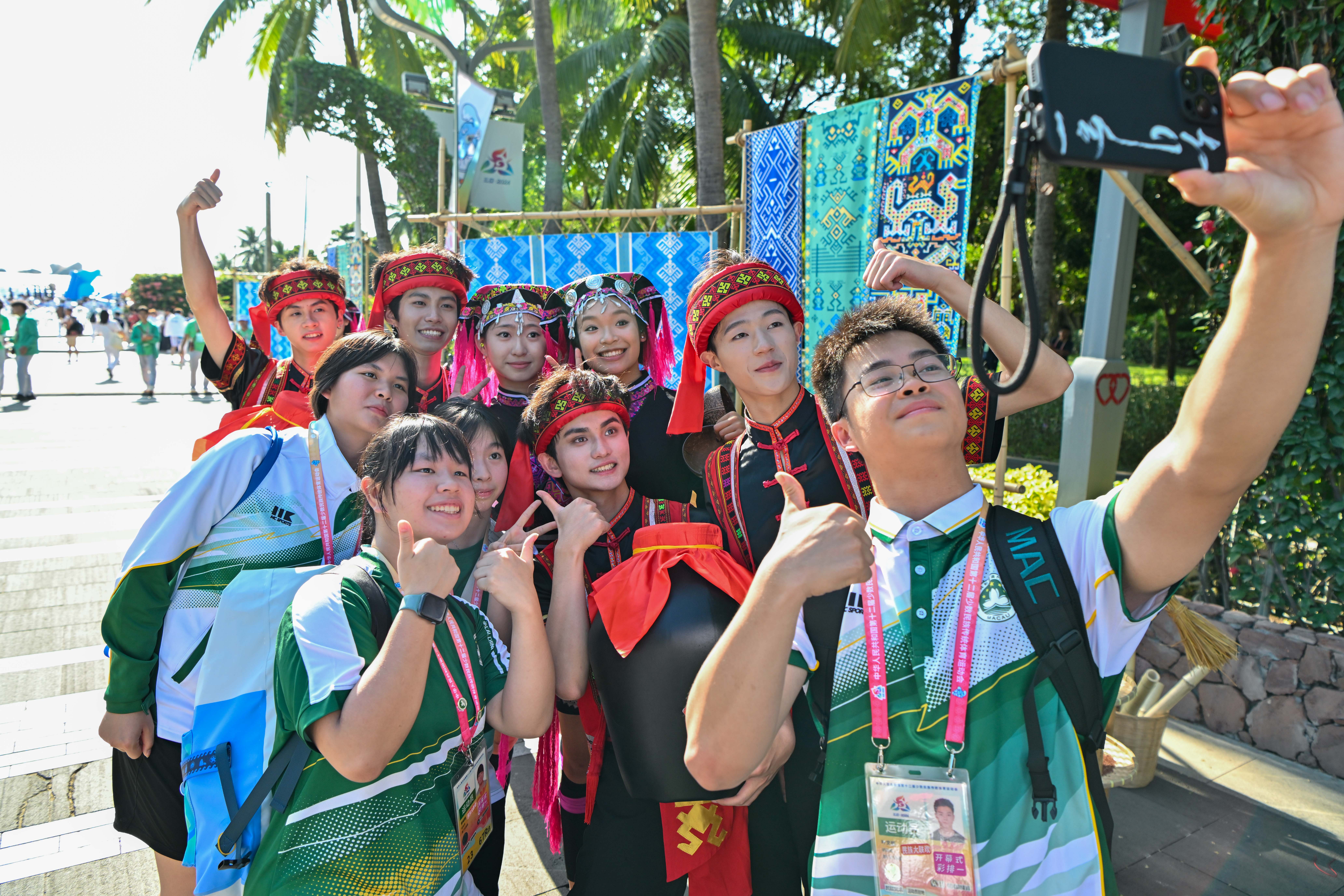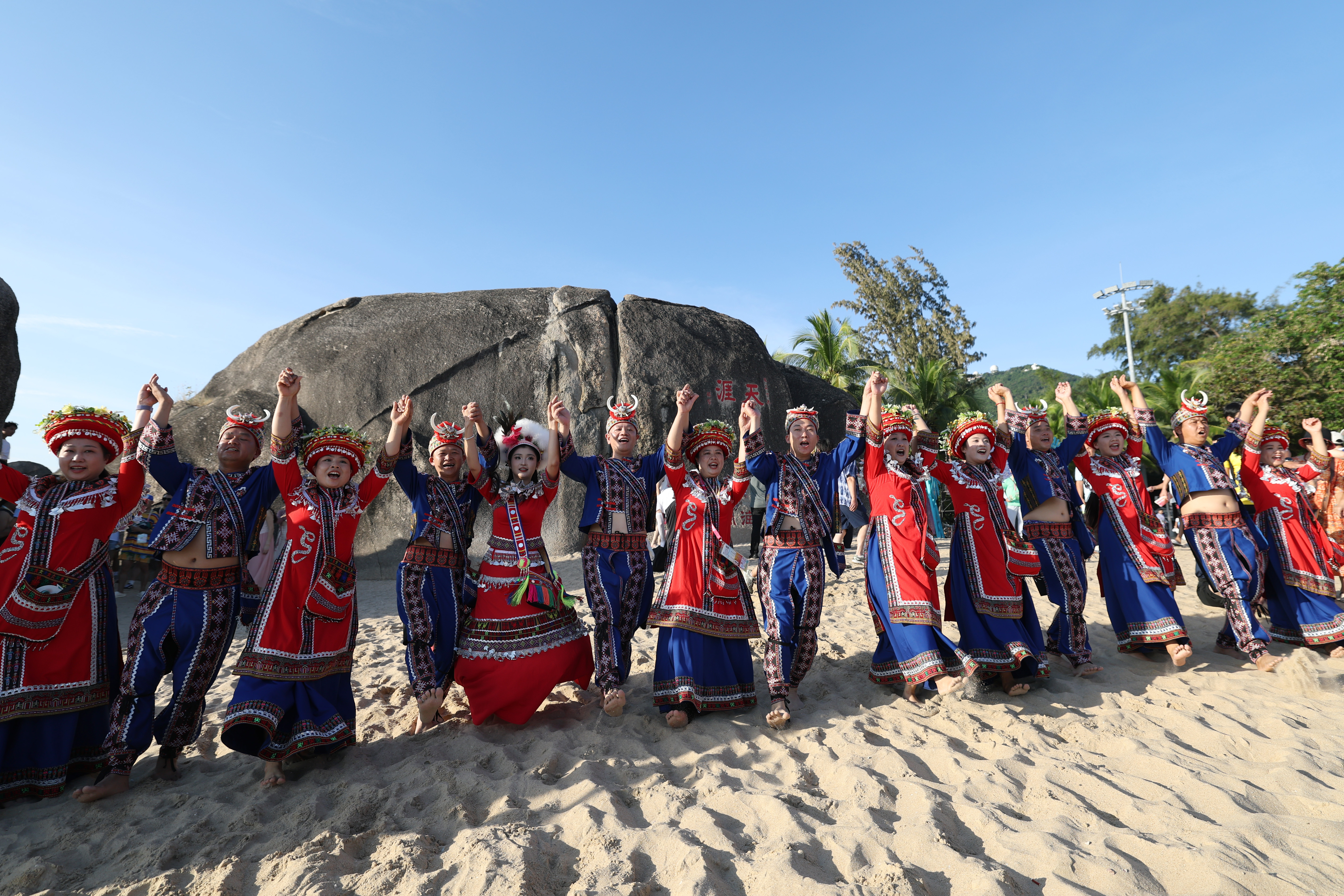 11月26日,福建代表团在天涯石旁载歌载舞。中新社