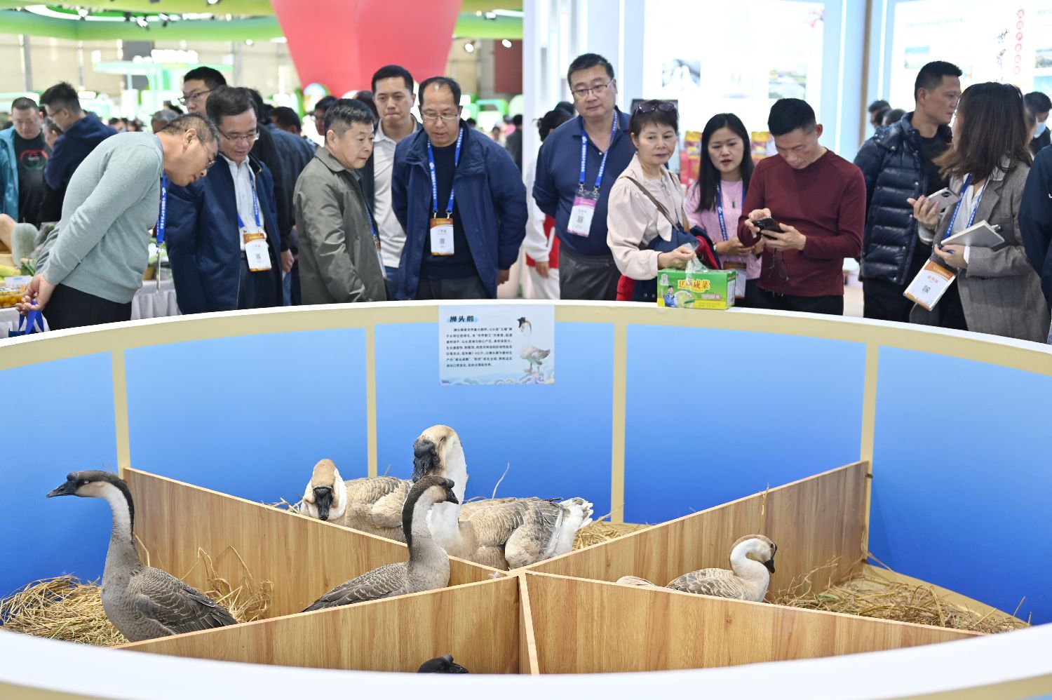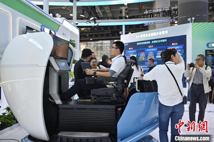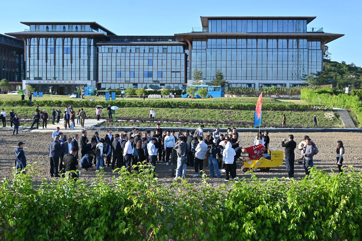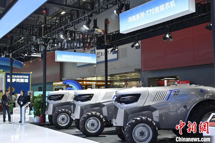 第二十一届中国国际农产品交易会现代农机展演示活动上,播种机吸引参观者。中新社