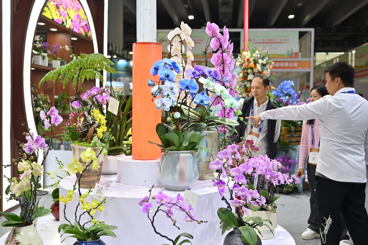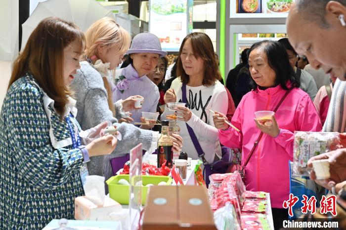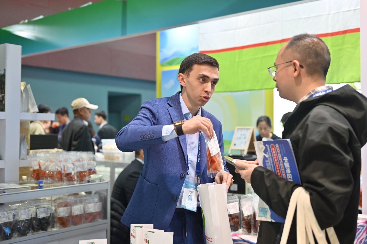 乌兹别克斯坦展位的干果吸引采购商。中新社