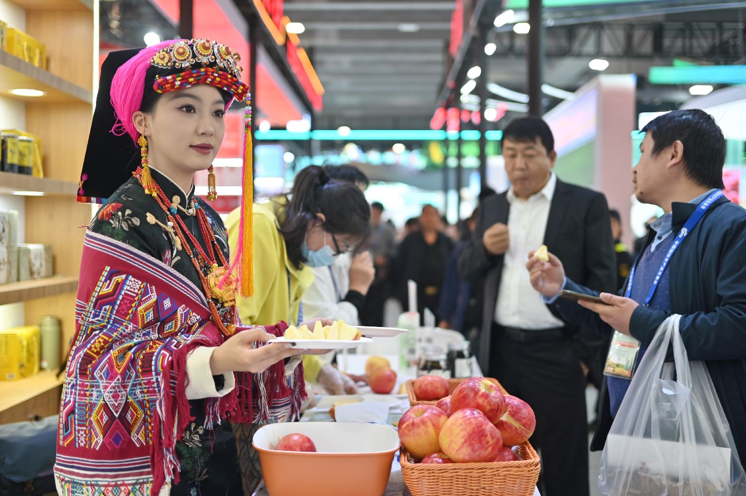 四川甘孜州的苹果吸引采购商品尝。中新社