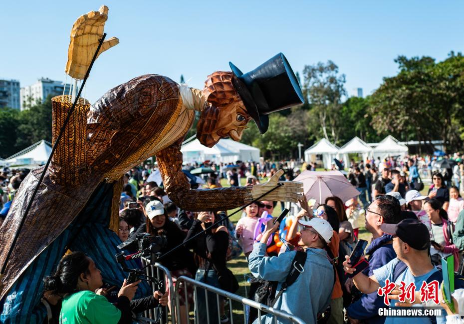 男主角福克先生木偶在维园与市民游客互动。中新网
