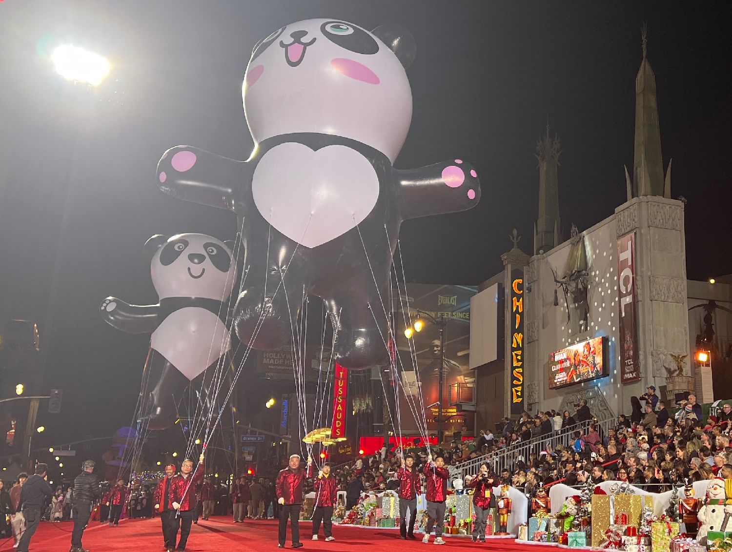 两只“大熊猫”气球首次亮相好莱坞圣诞大游行。