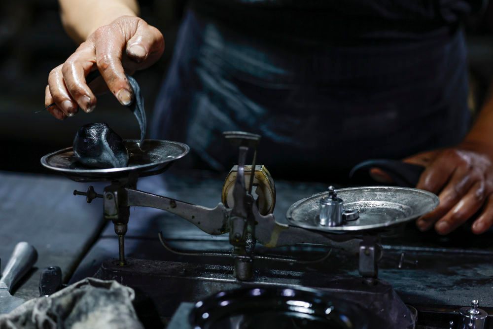 落纸如漆,万载存真。 徽墨,因产于皖南古徽州府而得名,至今已有上千年历史。徽墨制作工艺复杂,包括炼烟、制墨、晾墨、打磨、描金等10余道工序。如今,不少徽墨手艺人依然坚守着古法制墨工序,这样制作出的徽墨具有“拈来轻、嗅来馨、磨来清”等特点,是历代文人墨客的心爱之物。2006年,徽墨制作技艺被列入首批中国国家级非物质文化遗产名录。图为12月3日,在安徽省黄山市屯溪胡开文墨厂,制墨手艺人在称墨。