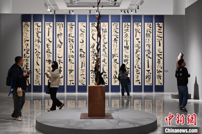 展览现场展出的韩美林书法。中新网