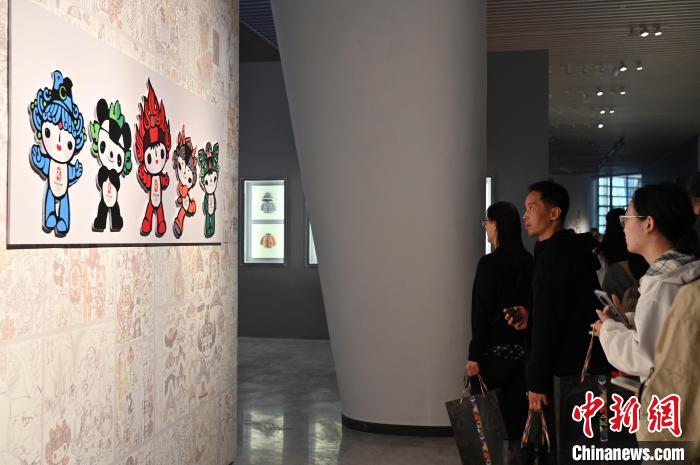 观众参观由韩美林领衔设计的2008年北京奥运会吉祥物“福娃”。中新网