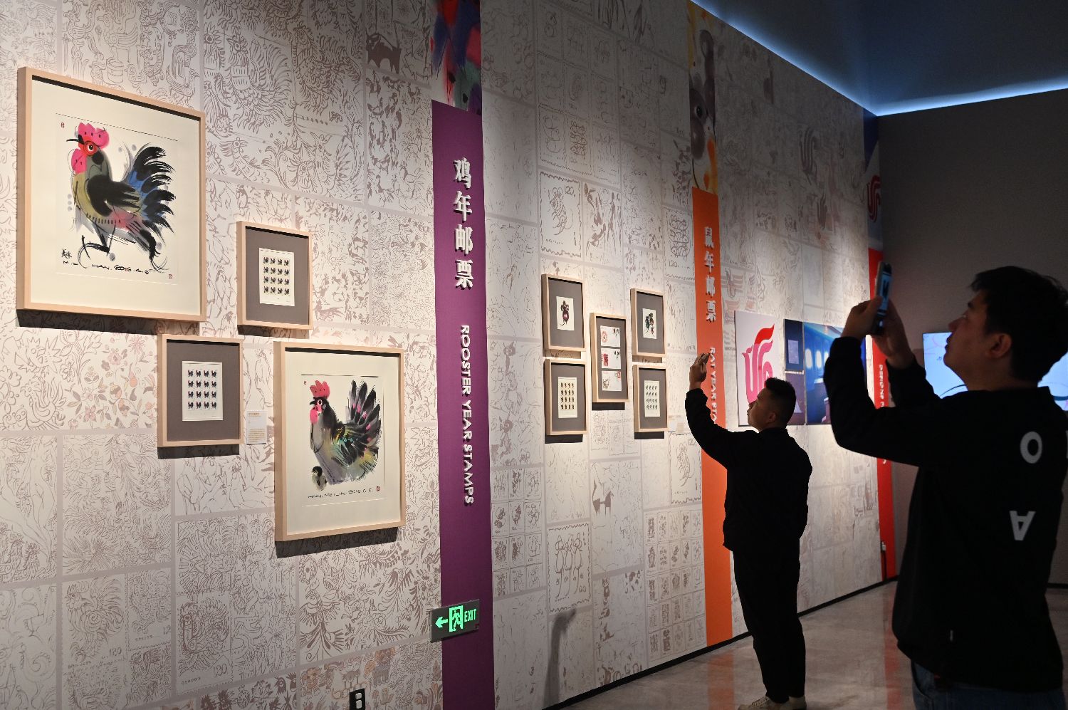 韩美林设计的邮票吸引参观者拍照。中新社