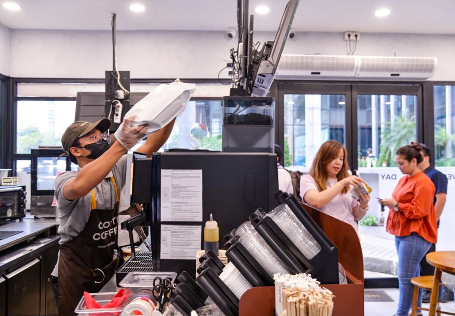 近年来,中国茶咖品牌相继进入印度尼西亚市场,掀起一股茶咖热潮。在雅加达的大街小巷,中国茶咖品牌成为引人注目的街头风景,不仅为当地人带来“甜蜜”体验,还为当地发展增添新活力。图为11月21日,在印度尼西亚雅加达的一家库迪咖啡门店。