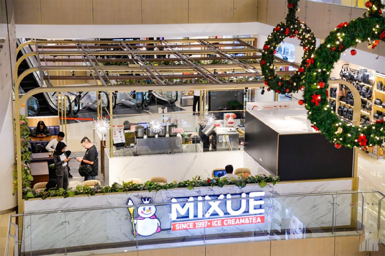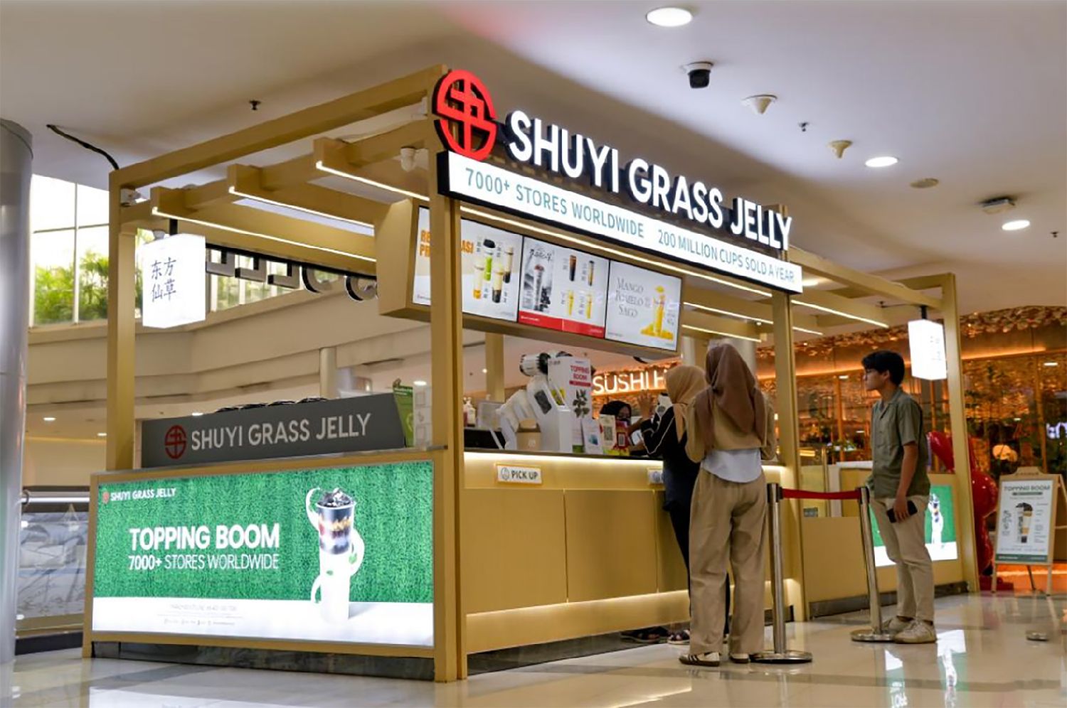 11月28日,在印度尼西亚德波,顾客在一家书亦烧仙草门店购买饮品。