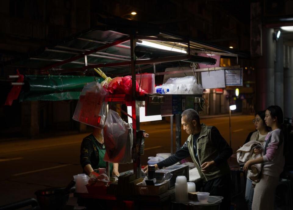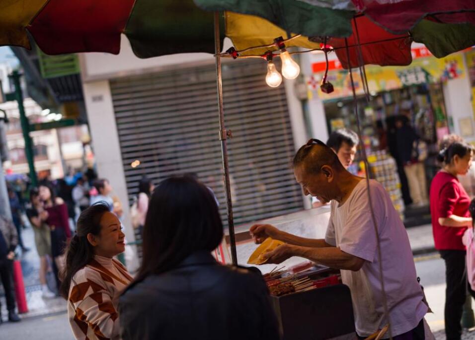 澳门是传统与创新美食交汇之地,“美食之都”是澳门的金名片。从平价小食到奢华大餐,澳门美食种类繁多,吸引世界各地食客慕名而来,走街串巷品味“澳门味道”。在这座美食之都的旧区小巷,隐藏着一些经过岁月洗礼的旧式车仔档和老字号美食店,金记烧烤、勤记甜品、荣记小食、万家安凉茶、南记煲仔饭、秋记大排档……这些本地人光顾了几十年的街头美食,承载着澳门人的记忆和情怀。饮食店家坚持守护令人迷恋的“古早味”,传承澳门特有的美食技艺和文化。图为12月9日,在澳门沙梨头海边街的荣记小食,员工在为客人打包食物。
