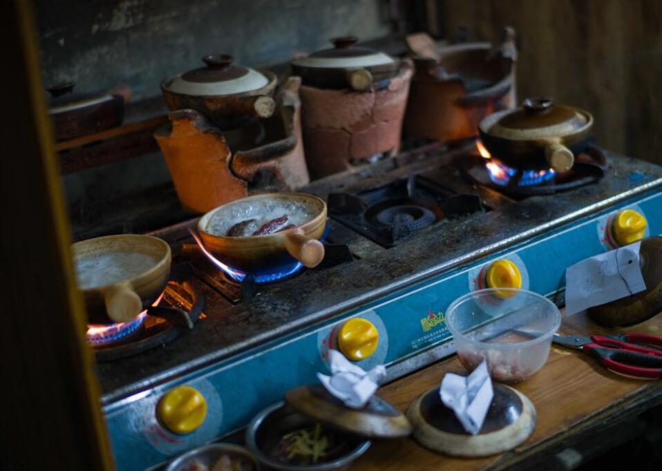 12月8日,在澳门新马路草堆街,正在烹饪中的南记煲仔饭。