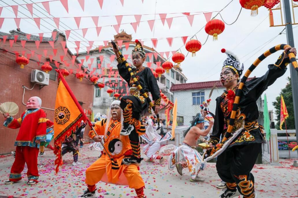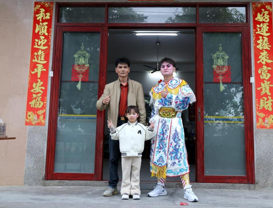 12月9日,庄恩琪穿上定制的服装在村里跳英歌。
