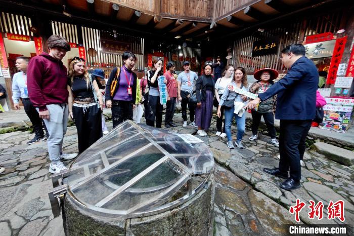 世界青年学生观看土楼里的水井。中新网