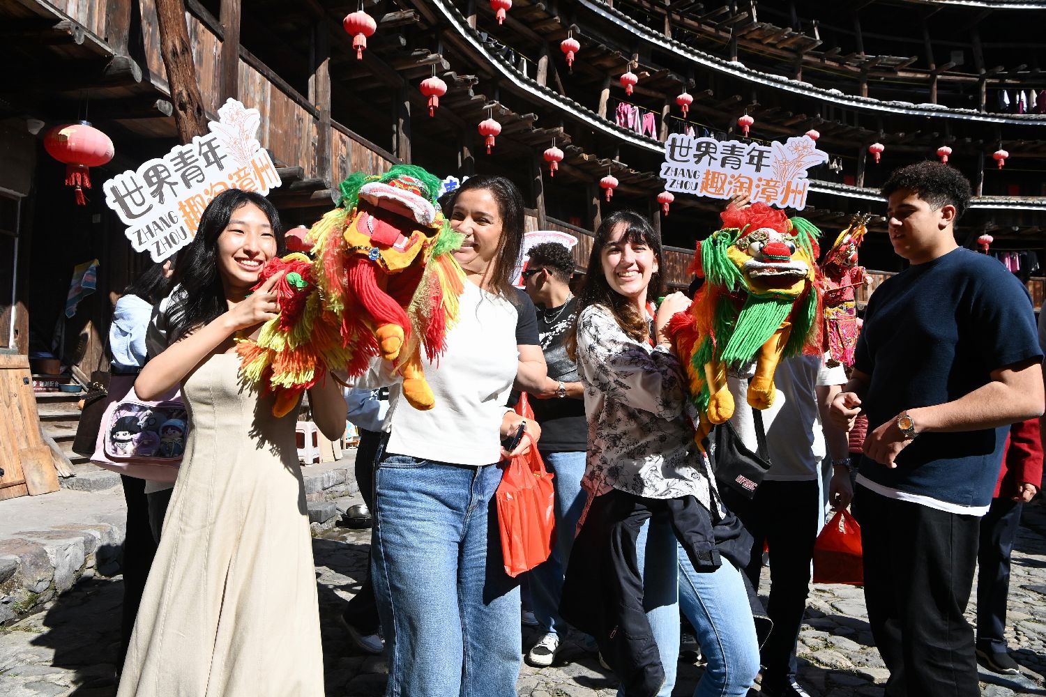 世界青年学生欢乐逛土楼。中新网