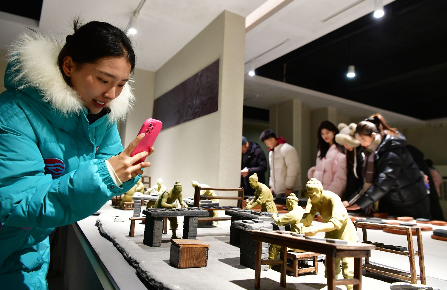 12月12日,大学生参观易砚博物馆时拍照。中新网