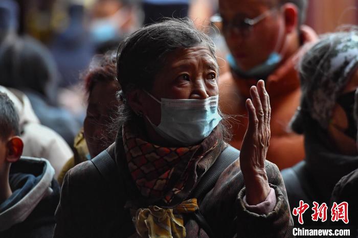 大批信众在大昭寺朝拜白拉姆像。中新网