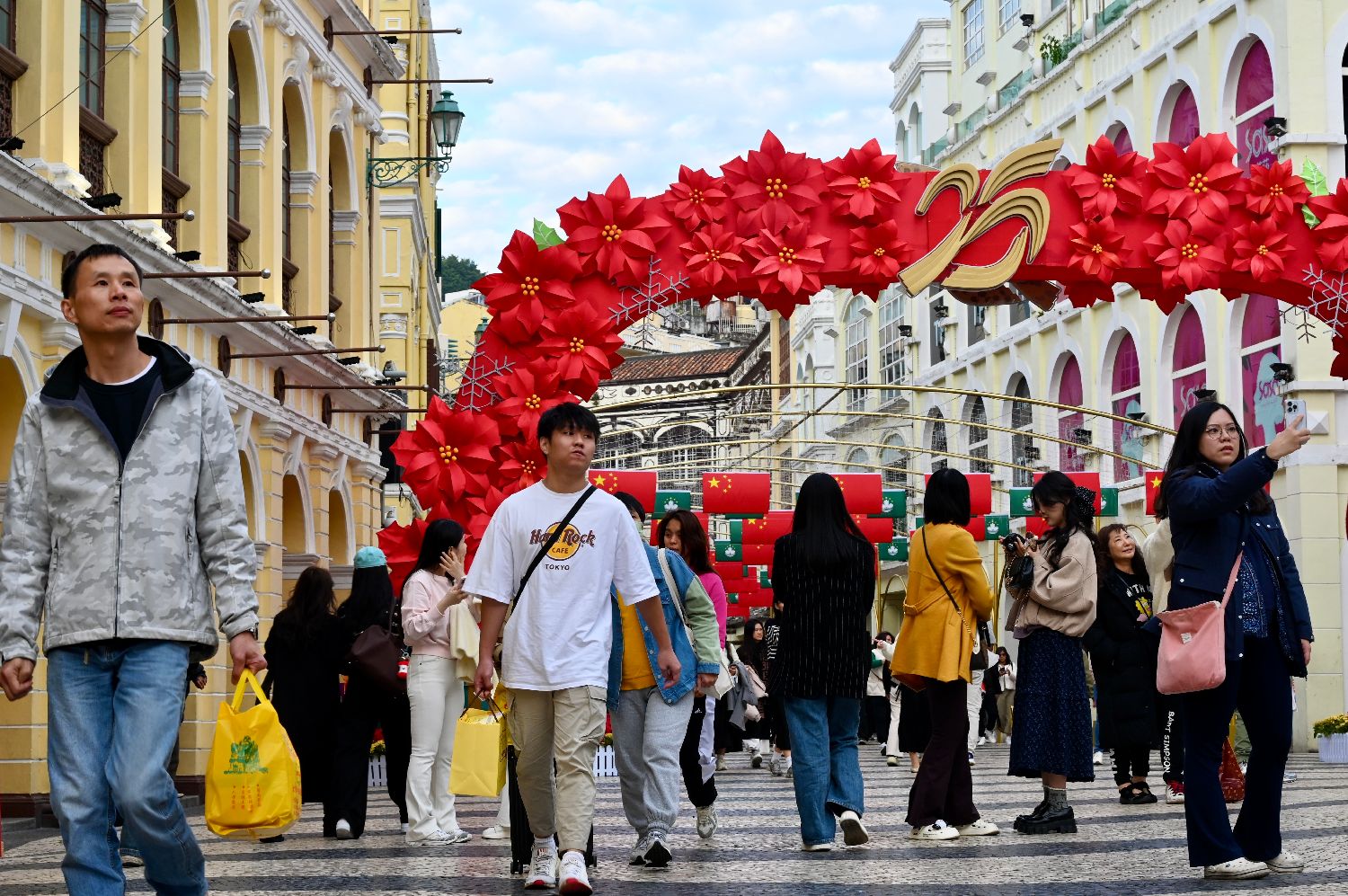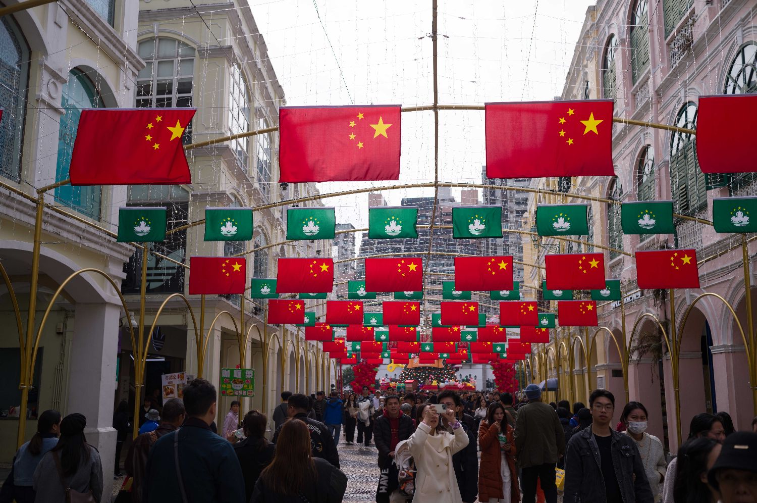 12月16日,澳门议事亭前地迎回归气氛浓厚。中新社
